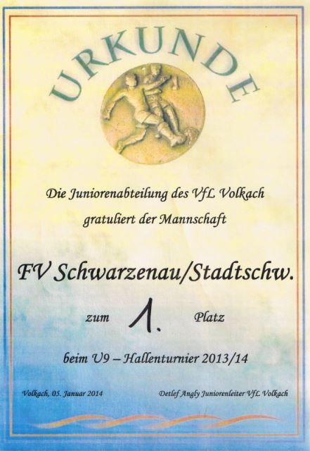 Zu Info: In den Gruppenspielen vier Siege, 20:0 Tore. Halbfinale gegen Rottendorf 2:1, Finale gegen Abtswind 1:0, Siegtreffer von David Klos drei Sekunden vor Schluss.